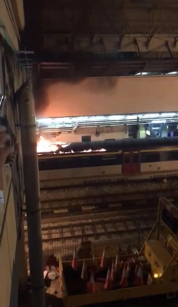 示威者在地铁站内纵火港人已经有点习以为常,但是昨晚有人直接点燃了一辆停在港铁沙田站路轨上的列车!