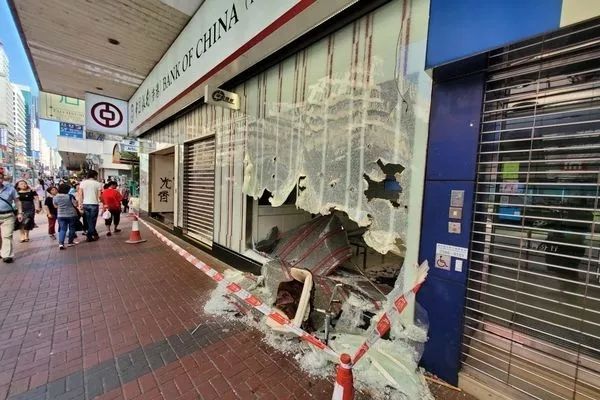 余铠均又说,以往只有劫匪才会撬烂银行的卷闸,但昨日有暴徒撬开银行卷闸,打碎玻璃门,甚至在银行内放火,暂时未知银行的损失。