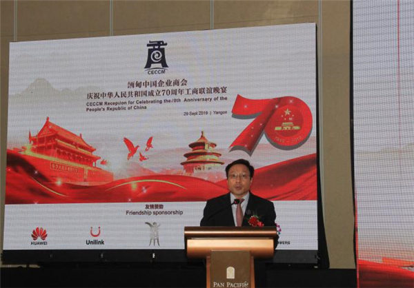 驻缅甸大使陈海出席缅甸中国企业商会庆祝中华人民共和国成立70周年工商联谊活动