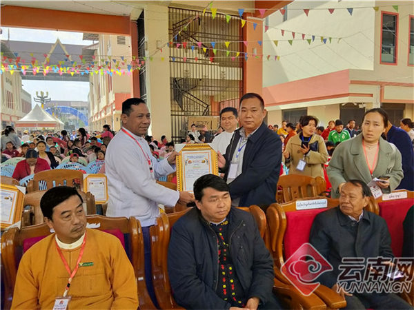 2018年12月28日,缅文《吉祥》杂志社携手昆明市妇幼保健院为缅甸木姐地区的孩子们捐赠了“爱心书包”,缅方官员为相关爱心单位颁发“爱心捐赠书”。张莹琳 摄