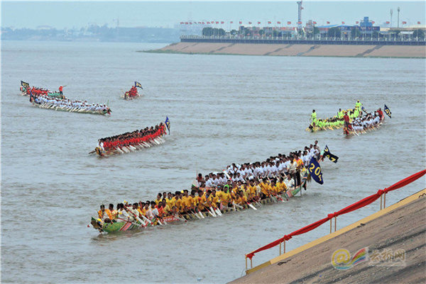 11月10日至12日,柬埔寨首都金边的王宫广场、湄公河畔张灯结彩,来自全国各省市的数万名龙舟选手齐聚四臂湾,柬埔寨迎来了一年一度的送水节。
