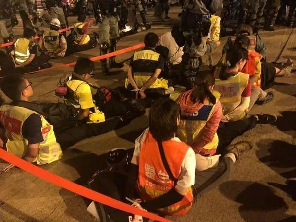 所谓“救护人员”被反绑拘捕。图源:香港“东网”