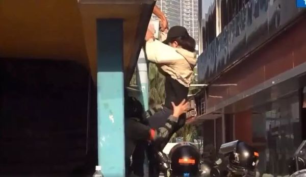 但尴尬的是,喊完口号后,他们下不来了——尽管天台离地面只有两三米。