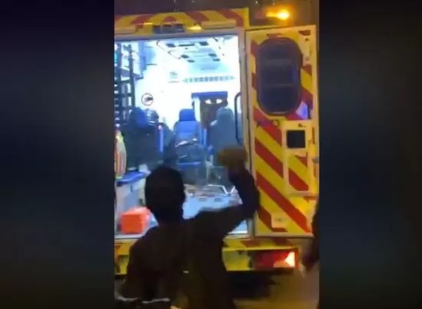 警方一辆装甲车遭到暴徒燃烧弹袭击。