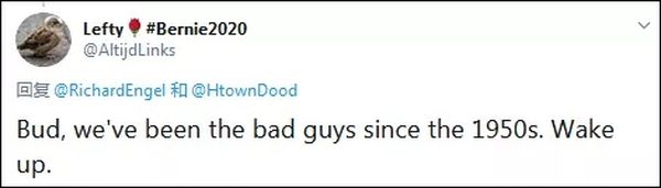更多的网友通过留言开始给恩格尔“补课”,试图唤醒这位NBC首席驻外记者。“醒醒啊兄弟,我们从20世纪50年代开始就是坏人。”