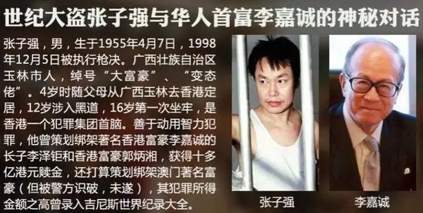 结果李嘉诚与大陆联系,要大陆惩处张子强。那不就是罪犯引渡吗?我们把张子强弄到深圳,按照李嘉诚要求,判处死刑。