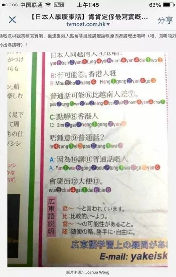 ▲ 香港人编的对日粤语教材:为什么香港人不喜欢普通话?因为讲普通话的人会随地大便。