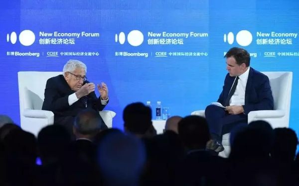 11月21日下午,北京雁栖湖畔,2019年创新经济论坛上,96岁的基辛格拄着拐杖,缓慢走上台,现场掌声热烈。