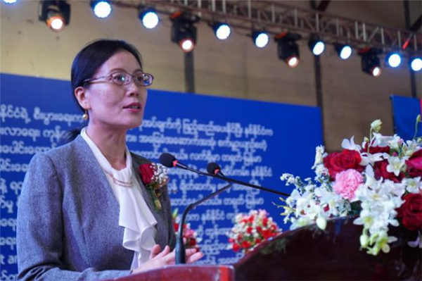 11月21日,首届缅甸(腊戌)—中国(临沧)边境经济贸易交易会开幕式在掸邦腊戌体育馆举行,中国驻缅甸使馆李小艳公参应邀出席开幕式并致辞。中国驻曼德勒总领馆王宗颖总领事,临沧市委书记杨浩东,缅甸商务部部长丹敏、常秘昂梭、掸邦计划经济部长梭纽伦、腊戌市长昂秋以及中缅参展商、采购商,两国边民等约400人参加活动。