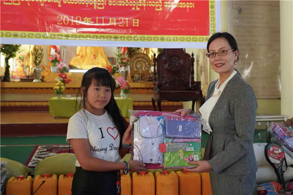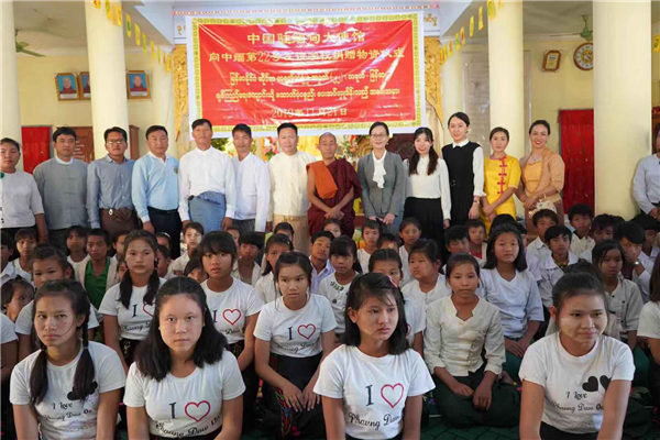中国驻缅甸大使馆向掸邦昂米达亚佛寺学校捐赠物资