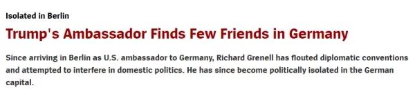 其实早在本月中旬,德国《明镜》周刊网站就公开批评格雷内尔,称他在担任美国驻德国大使以来,蔑视外交礼仪并试图干预德国国内政治。