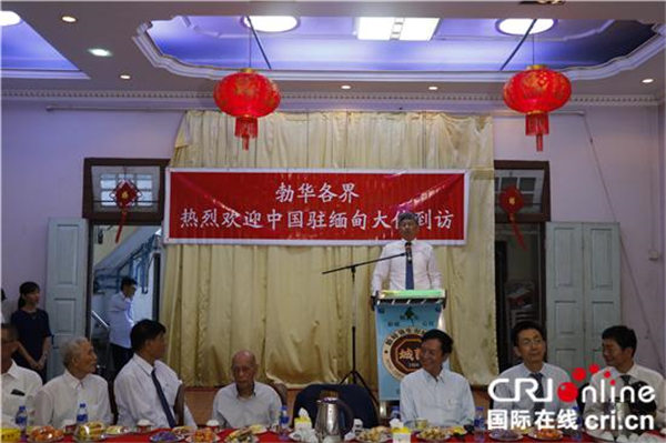 中国驻缅甸大使陈海在勃生福建同乡会馆与当地华人华侨代表举行茶话会并致辞