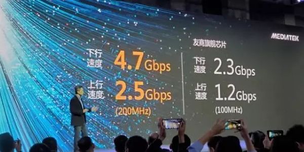联发科天玑1000 5G方面的领先超出了所有人的预料,是全球首款支持双载波聚合的5G单芯片,可聚合两个100MHz载波从而获得200MHz带宽,藉此成为全球速度最快,下载速度达到4.7Gbps,上传速度达到2.5Gbps。