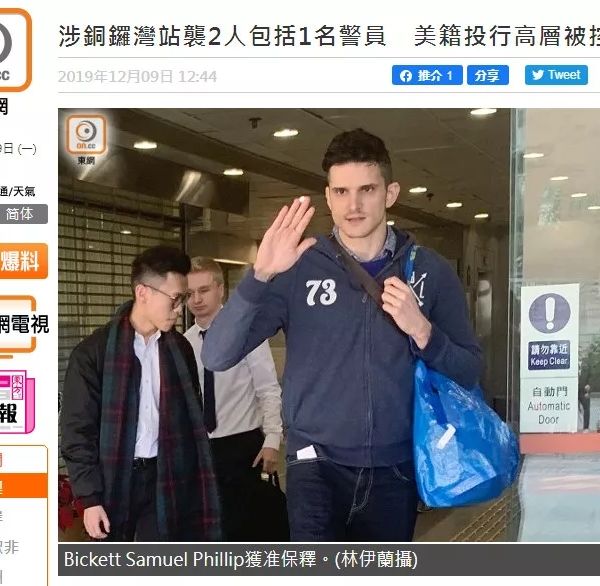 12月7日,一名休班警员途经港铁铜锣湾站时截查疑似逃票人员,遭2名外籍男子袭击,混乱期间,警员及路人合力制服了其中一名35岁外籍男子。据香港“东网”9日报道,该名35岁外籍男子名叫比克特·塞缪尔·菲利普(Bickett Samuel Phillip),是一名家住半山的美籍投资银行高层。今天(9日),他被押赴东区法院应讯。
