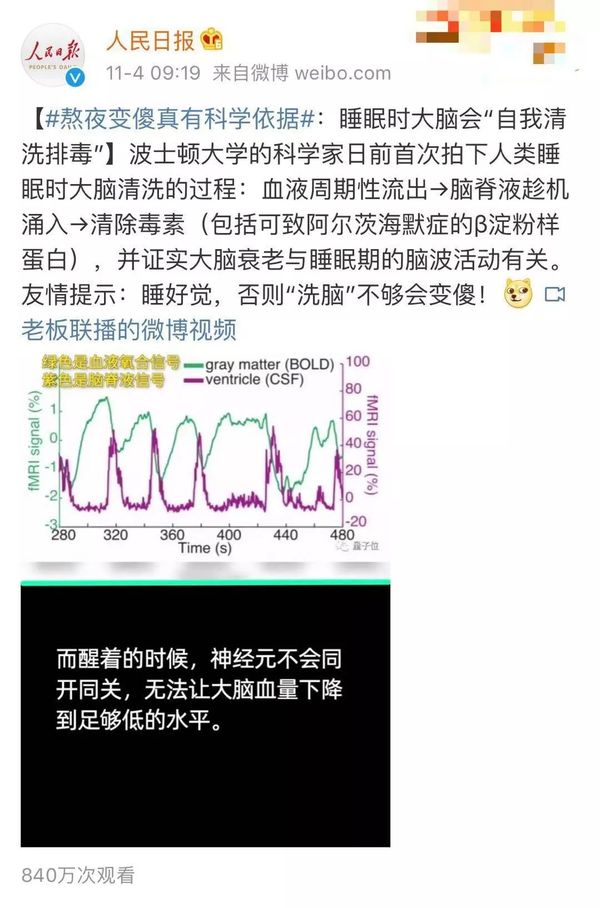 而这样的清洗,只有在睡着后才能做到,让人一觉醒来,拥有一个清爽的大脑;没睡着的时候,脑脊液并没有充分的机会趁虚而入。