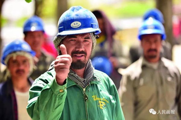 2017年4月,中国援建的阿富汗国家职业技术学院项目中的工人。阿富汗国家职业技术学院是近年来阿国内重要项目之一,项目对提升阿就业、促进阿经济社会发展将发挥重要作用。新华社 供图