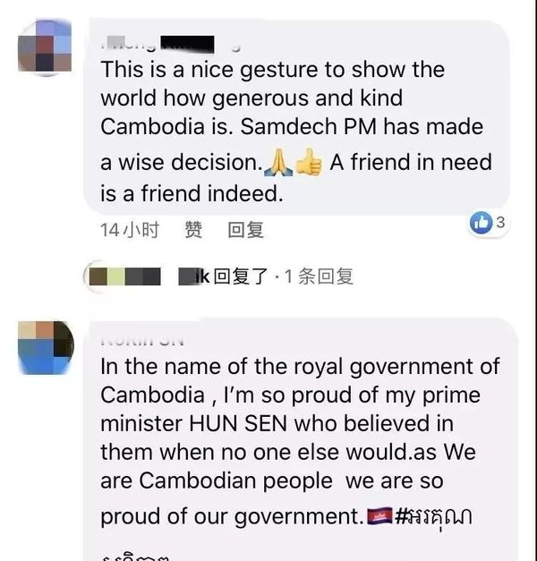 柬埔寨民众纷纷在洪森Facebook脸书专业留言,为自己的国家感到无比骄傲,为政府的举措表示支持。