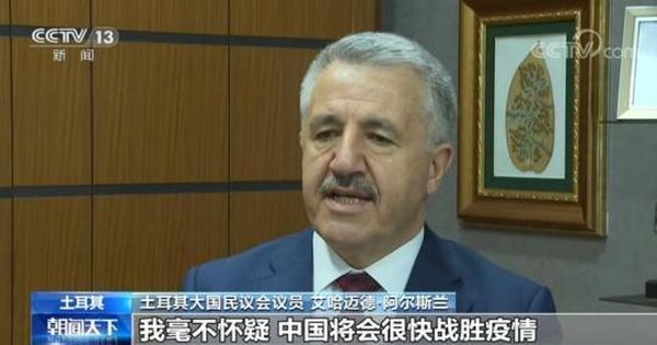 土耳其大国民议会议员 艾哈迈德·阿尔斯兰:我毫不怀疑中国将会很快战胜疫情,人们的生产生活将会恢复正常,中国正面临挑战,但是中国有能力通过努力来克服困难。