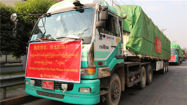 仪式结束后,缅方物资车队启程赶赴缅中边境口岸。为体现中缅合作和企业社会责任,中国中通国际(缅甸)有限公司将免费把有关物资从边境运抵武汉。