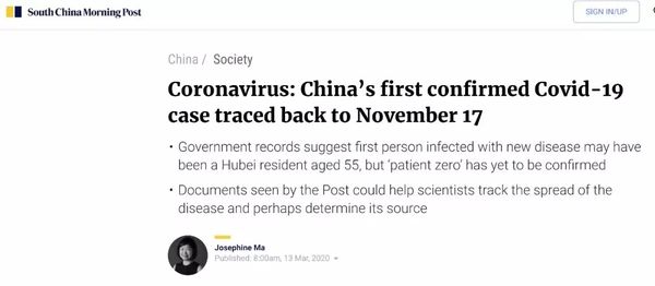 而香港《南华早报》在13日刊登文章透露,根据武汉市相关部门在去年底发出的内部文件,把首次发现疑似新冠患者的时间,向前推到11月17日。