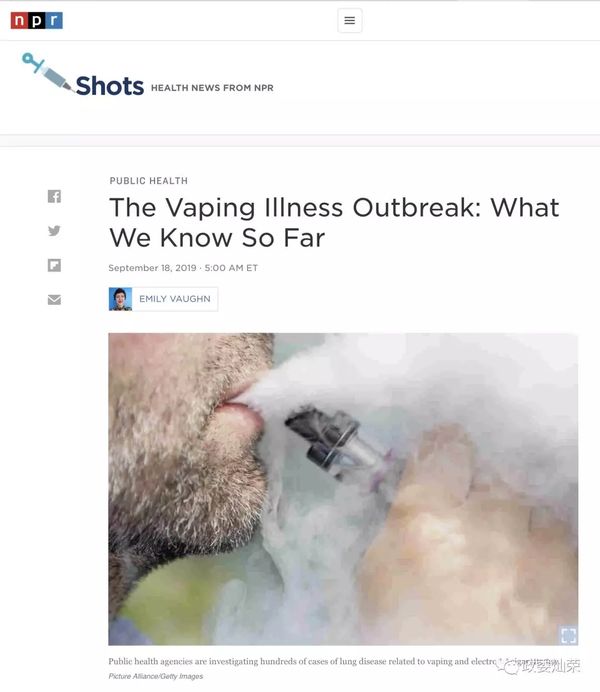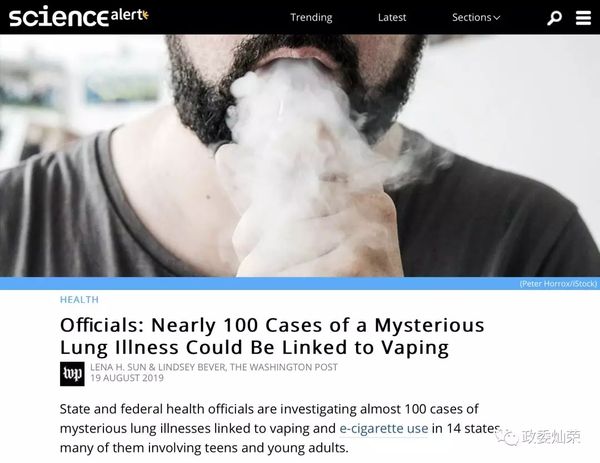 2020年1月29日,“Reuters”2711人因为电子烟导致的肺病住院,60人死亡。(笔者注:原链接已无法访问)