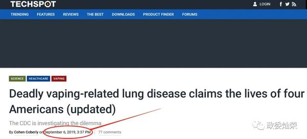 2019年12月20日,“TIME”报道,2506人因“电子烟导致的肺炎”住院,54人死亡 。(笔者注:原链接已无法访问)