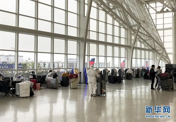 ▲3月28日,人们在美国纽约肯尼迪机场的一个航站楼内候机。新华社发