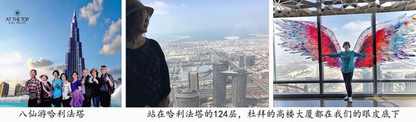 我们的行程包括上到哈利法塔的124层(452米)观看杜拜市景,参观的人流非常多, 排队入场都花上一小时。在124层,可沿着360度的玻璃窗浏览杜拜风光。