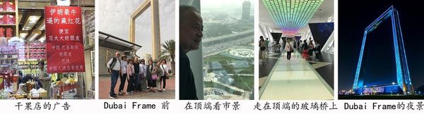 第一天只安排半天游,于是我们自费参观 Dubai Frame, 门票52.5 Dirham ($14.29)。 其特点是整座建筑物如同一个相框, 高150米,顶上横梁处除两边的玻璃墙可居高临下看市景,中间是玻璃地板,走在上面可直视楼下地面风光。