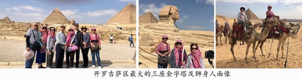 3/1/2020,终于来到了梦寐以求的金字塔,金字塔是古埃及国王(历史上称为法老)的陵寝。第一天参观的是开罗市郊吉萨地区有名的最大的金字塔-----胡夫Khufu,胡夫的儿子Khafra及孙子Menkaura的三座金字塔,作为人类建筑史的奇迹,其建筑技巧不可思议。来到世界七大奇迹之一,大家都释放出所有能量,尽情地拥抱金字塔,爬上基座的大石振臂欢呼到此一游。除了攀爬金字塔,参观人面狮身像,还骑上骆驼取景留念。