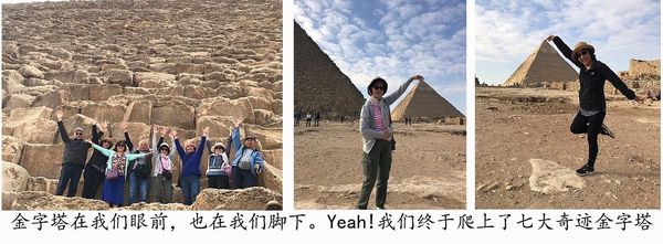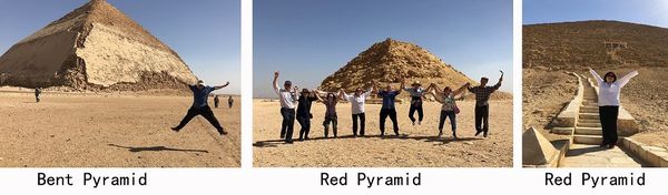3/8/2020,临上飞机前又去参观Dahshur地区的两座较小的金字塔,Bent Pyramid及 Red Pyramid。在Bent Pyramid,不少团友钻进了狭窄的通道,弯腰爬进金字塔里头探秘。张少应和梁瑛金最能耐,一直爬到了尽头并看到有许多蝙蝠。这里的游客相对地比胡夫金字塔少,我们放开心境攀爬,拍照,尽情地在金字塔周围跳跃,暂时忘却了年龄,忘却了疫情的烦恼。