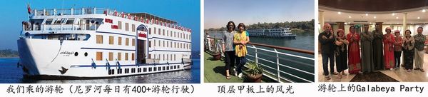 3/2/2020,从开罗飞往卢克索(Luxor),在此开启四天的尼罗河之游。尼罗河是世界上最长的河流(6670公里),两岸有许多古迹。我们搭乘的游轮是Movenpick Royal Lotus。 船高四层,共有60个可浏览窗外河岸风光的客舱,除主餐厅,休闲室,顶层是带有游泳池及酒吧的露天休闲场所。每日三餐供应丰富的自助餐,还有下午茶 或傍晚的鸡尾酒等,不愁吃喝。一路上两岸风光迤逦,途经古迹就上岸观光,四天的旅程,我们共参观了至少十处古迹包括尼罗河最大的水坝(高坝)。尼罗河之游,既有写意的享受,更有生动的历史课堂。值!