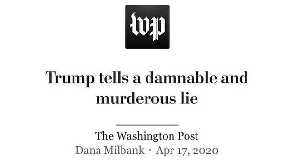 《华盛顿邮报》当时在报道中表示,特朗普对世卫组织的无端指控是“致命的谎言”。
