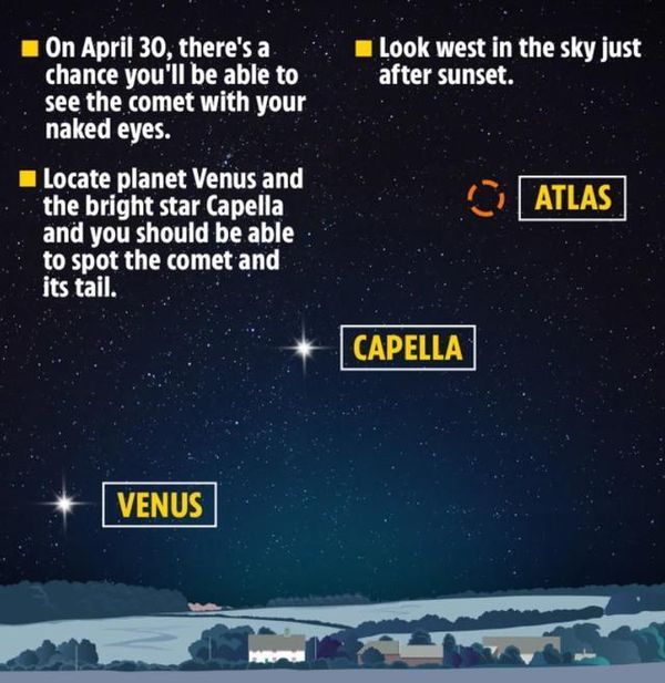 天文学家表示,目前阿特拉斯彗星的慧尾已经开始出现并生长,可通过双筒望远镜在北斗七星附近观测到。待4月底-5月初,阿特拉斯彗星将更加靠近太阳,观星也到达绝佳状态,届时仅凭肉眼便可观测到彗星飞行。