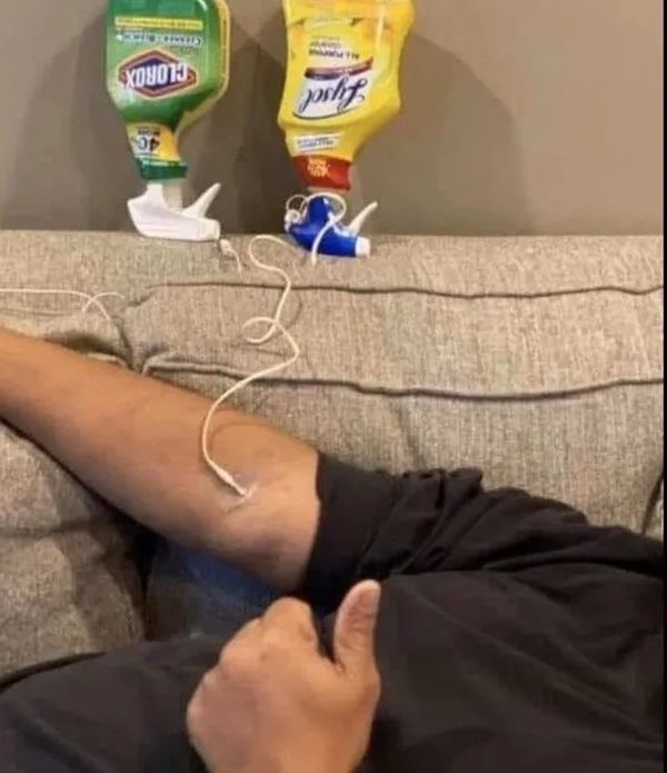 一根皮管连到消毒液里,一个针头插到自己胳膊里。特朗普偏方+美国人土法,热火朝天就干起来了。