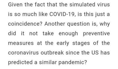 The US Department of Health and Human Services ran a scenario last year that was similar to the COVID-19 outbreak. Is this just a coincidence?