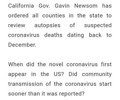 When did the novel coronavirus first appear in the US? Did community transmission of the coronavirus start sooner than it was reported?