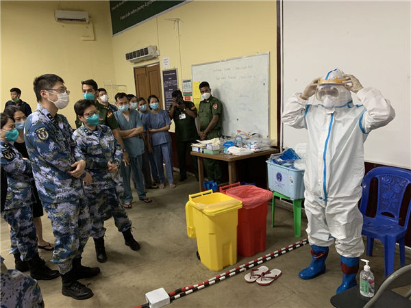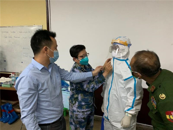 中国军队援缅抗疫专家组与缅甸军队医护人员就防控新冠肺炎进行交流