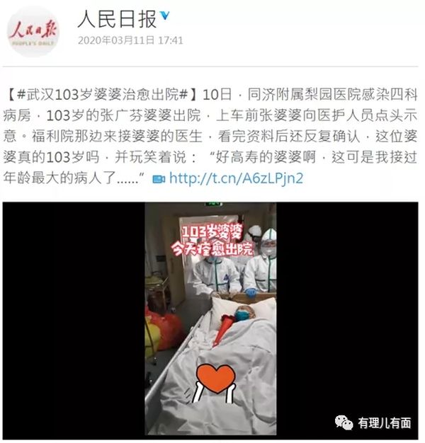 即使有老年人感染,政府也会倾全力救治。103岁的张婆婆和101岁的周爷爷相继治愈出院的消息在国内牵动着众多人的心。这说明,老年人是否成为疫情牺牲品,最重要的还是看政府、社会是否及时施救并采取积极应对的有效措施。