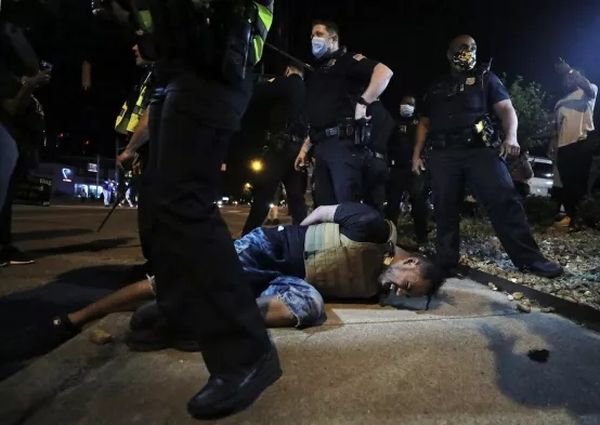 5月28日,美国田纳西州孟菲斯警察在一场抗议活动中控制了一名示威者。