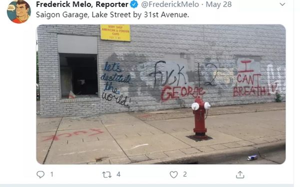 根据美国亚裔资讯网站NextShark,在因黑人乔治·弗洛伊德遭白人警察暴力致死所引发的反种族主义和警察暴力的抗议与暴乱风波席卷全美的同时,美国有6个爆发抗议和暴乱的地方,出现了亚裔店铺被破坏乃至被抢劫的事件。