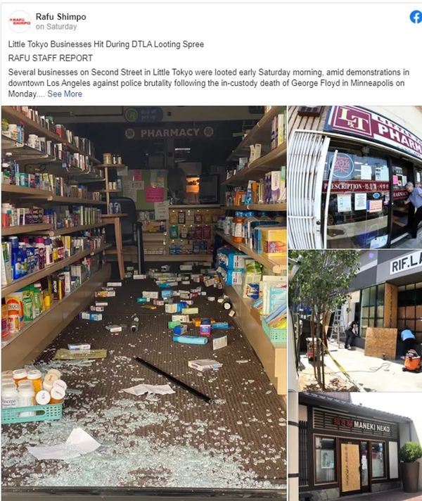 在洛杉矶,位于当地“小东京”的日裔美国人的店铺也难逃厄运。其中一家遭到冲击的店铺主表示,自己对于这一局面感到难过和伤心,并同样提到新冠疫情对这些小生意的冲击已经很大了。但该店主也表示自己仍然支持黑人抗议者伸张正义,只是不认为打砸抢烧分子是这场运动的一部分。