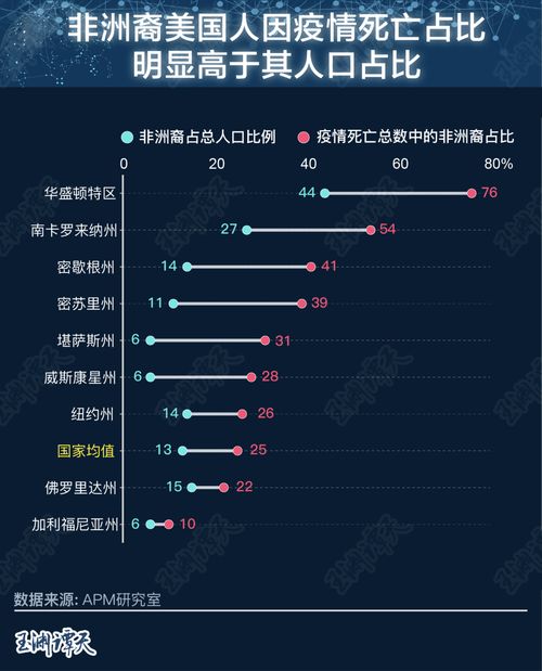 尤其在一些地方,情况更为严重,比如堪萨斯州、华盛顿特区、密苏里州和威斯康星州,这几个地区的非裔美国人因疫情而死亡的比例,均高出白人5倍。