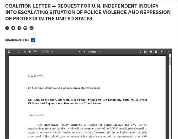 其实不等外国关注,美国内部早已有此动向。据路透社报道,上周有超600个社会团体,在美国公民自由联盟的牵头下,联名致信联合国人权委员会,要求对美国的人权侵犯问题展开调查。