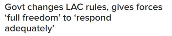 这个信息最早是由多家印度媒体透露出来的。上周,印媒援引军方知情人士的话说,印军对中国军队的“战斗规则”将出现重大变化,政府将允许边境实控线的驻军指挥官在“战术处置层面”采取“完全自由的行动”。