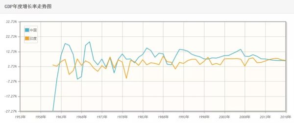不过,好不过5年,2019年印度经济增速一下跌到5.3%,又落到中国(6.1%)后面。