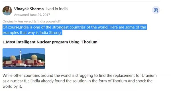 不过,下面是一个印度人的回答。根据认证信息,这个人住在印度安得拉邦维沙卡帕特南。
