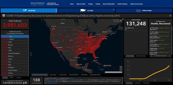 截至当地时间7月7日,美国新冠肺炎累计确诊数达298.1万例,死亡数超13万例。根据美国约翰·霍普金斯大学统计数据显示,美国每10万居民中就有39.72人死亡。