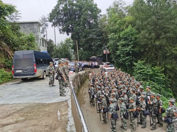 7月9日18时许,在松桃苗族自治县长兴堡镇中坝村一山林中找到2名脱控的缅甸籍人员(脚某、脚某稳)后,继续组织警力对另外2名进入洞脑壳山(小地名)的脱控人员进行合围搜寻。
