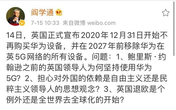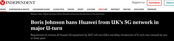 编者按:7月14日,英国政府宣布在5G建设中停止使用华为设备,引起轩然大波。英国为什么突然宣布禁用华为?对华为、英国以及中英关系有什么影响?美国在这场5G之战中又扮演了什么角色?这是一场更深刻国际局势变化的预演?